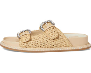 • The Dolce Vita® Shauny sandal combines comfort, style, and versatility in one perfect design. Ideal for any occasion, it offers a reliable and fashionable option for all-day wear. Crafted from hemp upper, leather lining, and insole, this pair of slip-on style sandals features double strap with buckle detailing, open round toe, and brand detailing on the footbed.