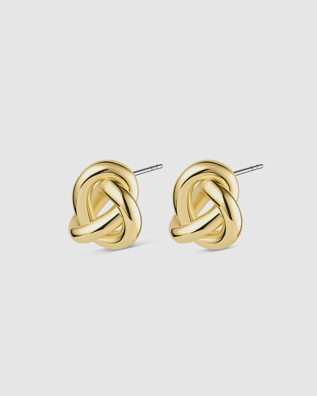 Make a statement in the Infinity Knot Studs. These stunning gold plated knot earrings bring eye-catching shine to your daily ear stack. They're unique design is easy to love and perfect for adding a touch of elegance to any look.