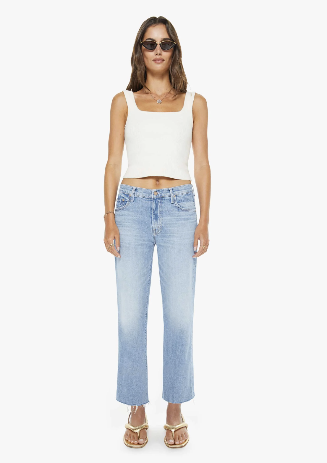 These jeans are semi-rigid and take time to break in. MOTHER says patience is a virtue.