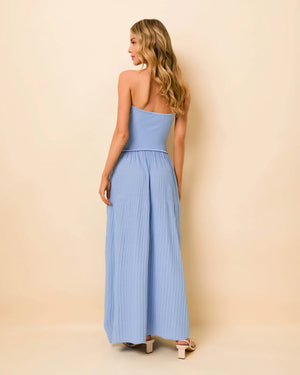 The Strapless Soglio Ribbed Knit Dress in Blue Lagoon is a maxi dress silhouette that features a fitted, strapless top and a softly shirred, lightweight knit skirt, creating an effortlessly refined look. The perfect blend of comfort and elegance, it's a must-have for any warm-weather occasion. This style is pull-on and has no hardware.