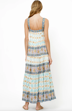 Tailored from lightweight cotton voile, this trapeze-style silhouette offers an airy, tiered volume designed for fluid movement and effortless grace. The intricate botanical motifs and shimmering gold accents create a versatile, resort-forward look perfect for transitioning from a sun-drenched afternoon to an elegant coastal evening.