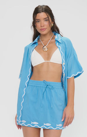 Say hello to your new go to: the Bay Street Skirt! With an elastic drawstring waist and pockets, it’s perfect for poolside lounging or beachside adventures. Pair with the matching top for an easy, effortless set!