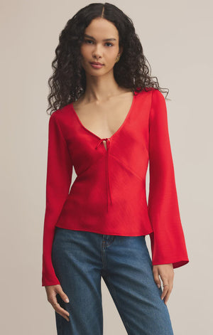 Made from lightweight luxe satin, this long sleeve blouse feels smooth and drapey with a flattering v-neck and adjustable front tie. Whether you wear it loose and easy or cinched and styled, it’s an easy way to dress up any look.