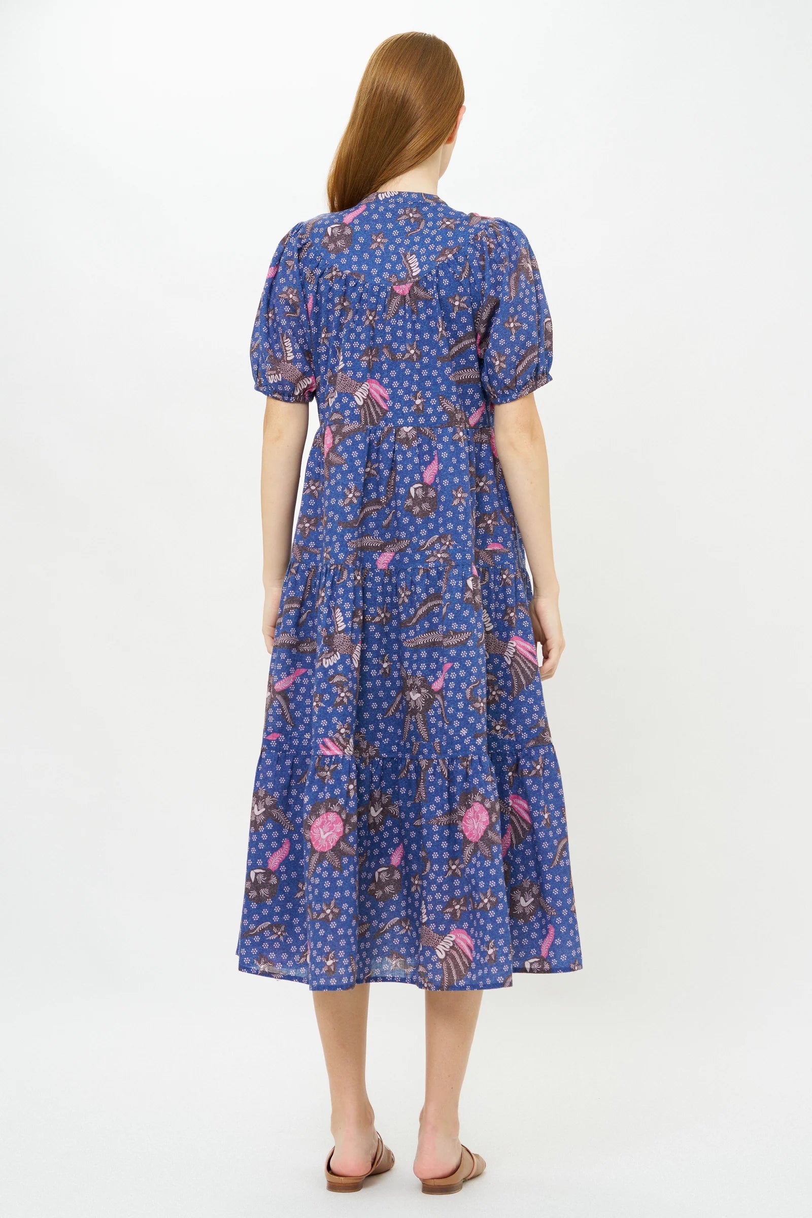 - A-line midi dress with tiered skirt
