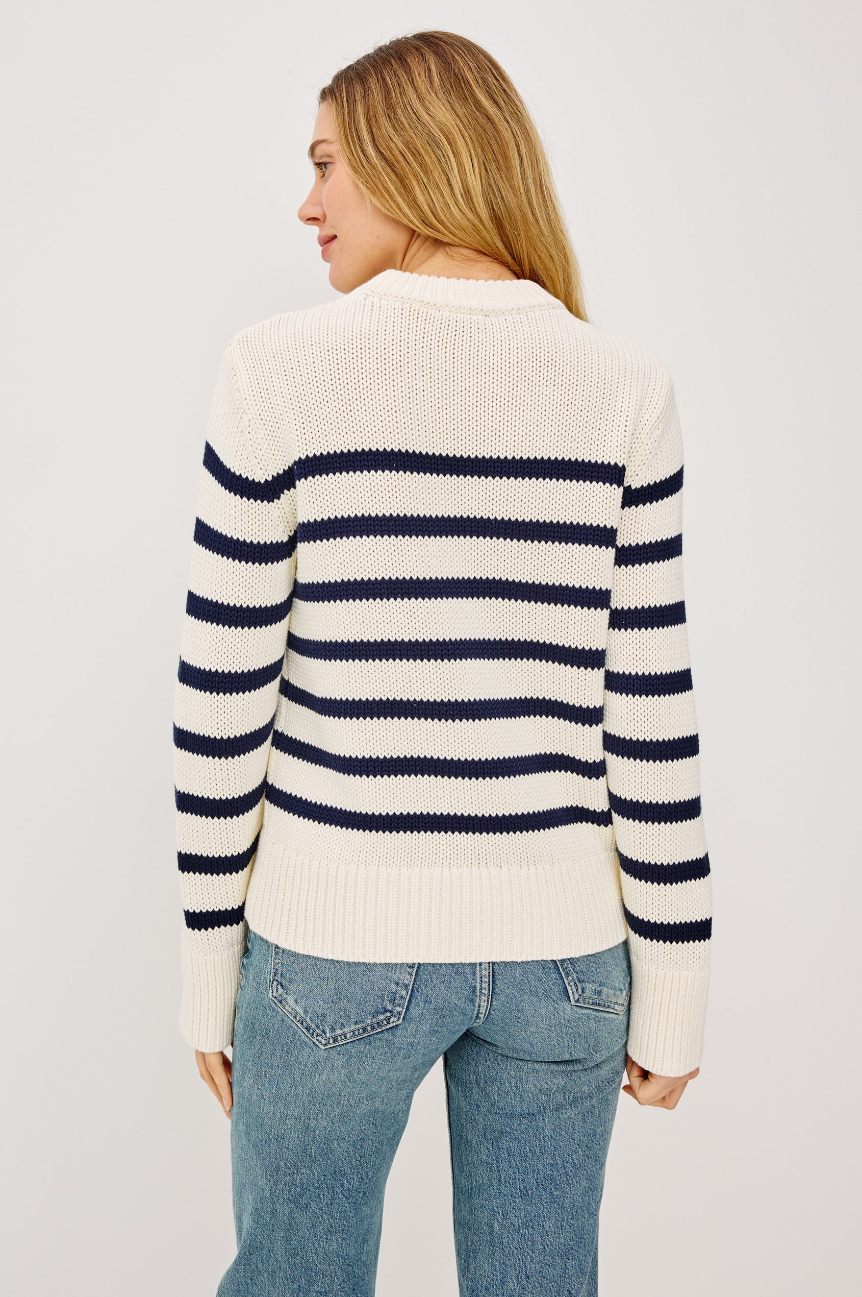 Alise Sweater in Ivory Navy Stripe