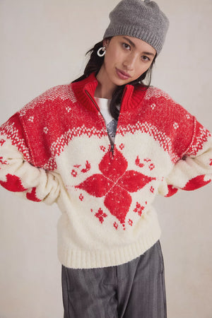 Cozy nights and festive feels, this slouchy sweater features a soft knit fabrication and an oversized, quarter-zip-inspired silhouette, creating the perfect laidback layer.