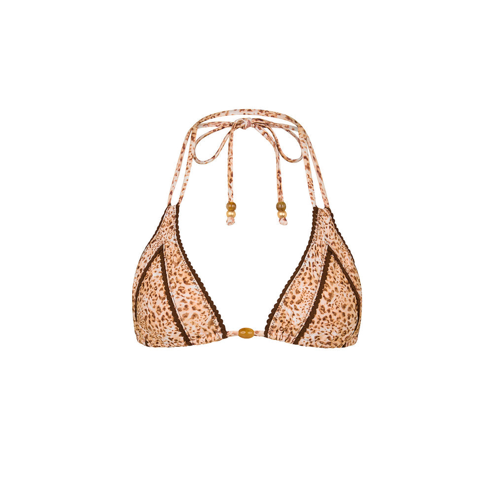This halter neck tanning top features a luxe inner decorative trim and offers ultimate adjustability for a secure fit. Double string neck ties provide added support and lift—perfect for D+ cup sizes!